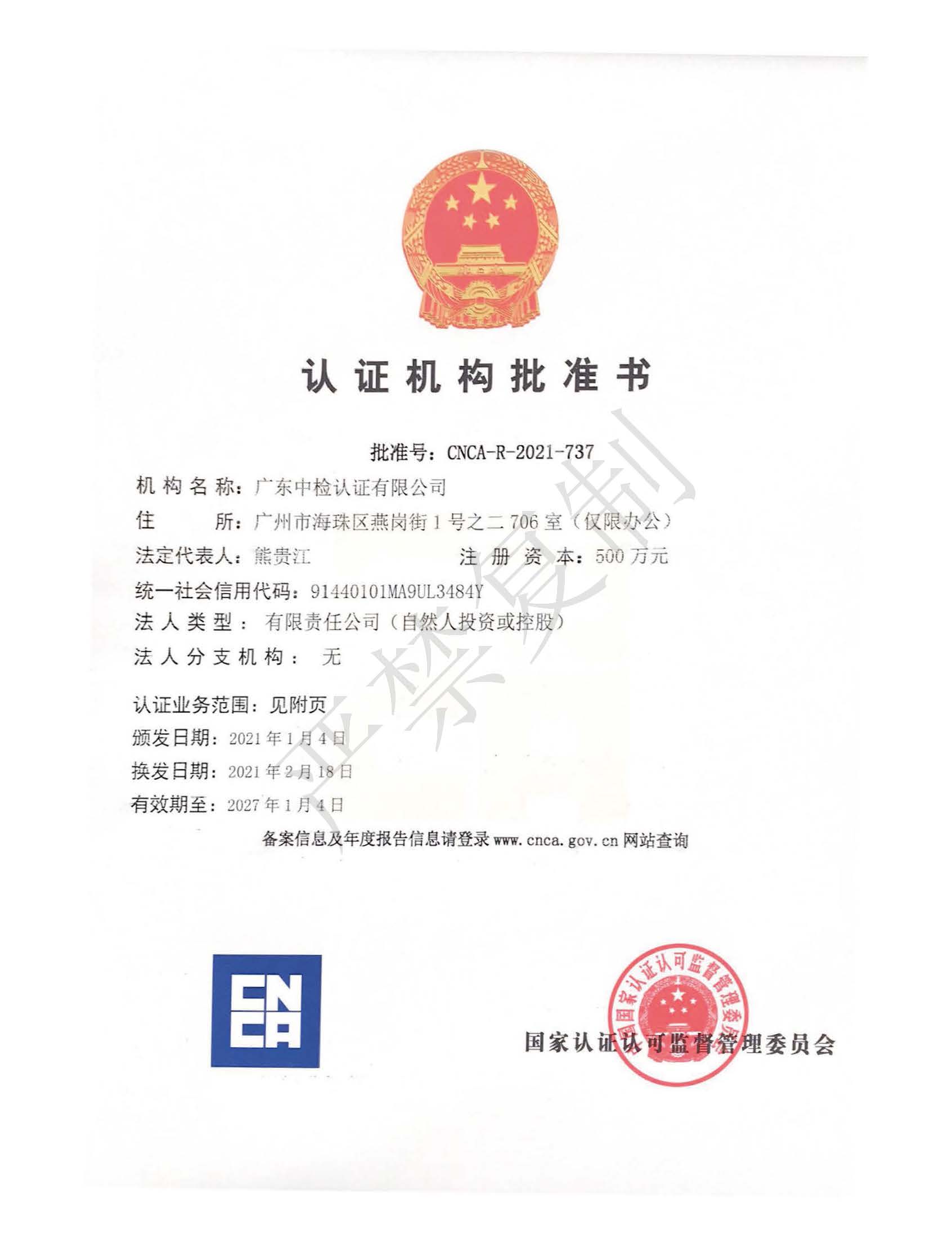 認證機構批準書